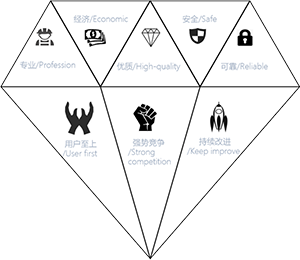 价值观:诚实的与人相处,尊重他人并且乐于助人;严谨的对待工作,坚守原则;快速的解决问题,不抱怨客观条件;团结一致,勇往直前,奋斗不息。